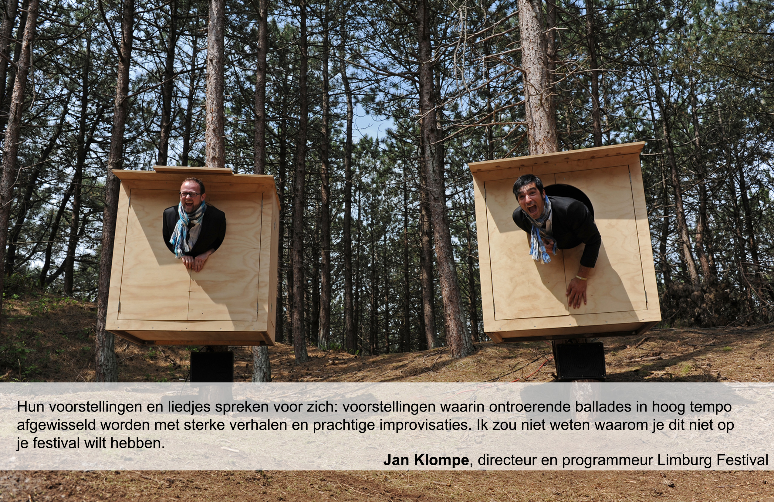 Goedgebekt is een bijzondere muzikale voorstelling in, op, en rond twee bijzondere levensgrote vogelhuisjes.